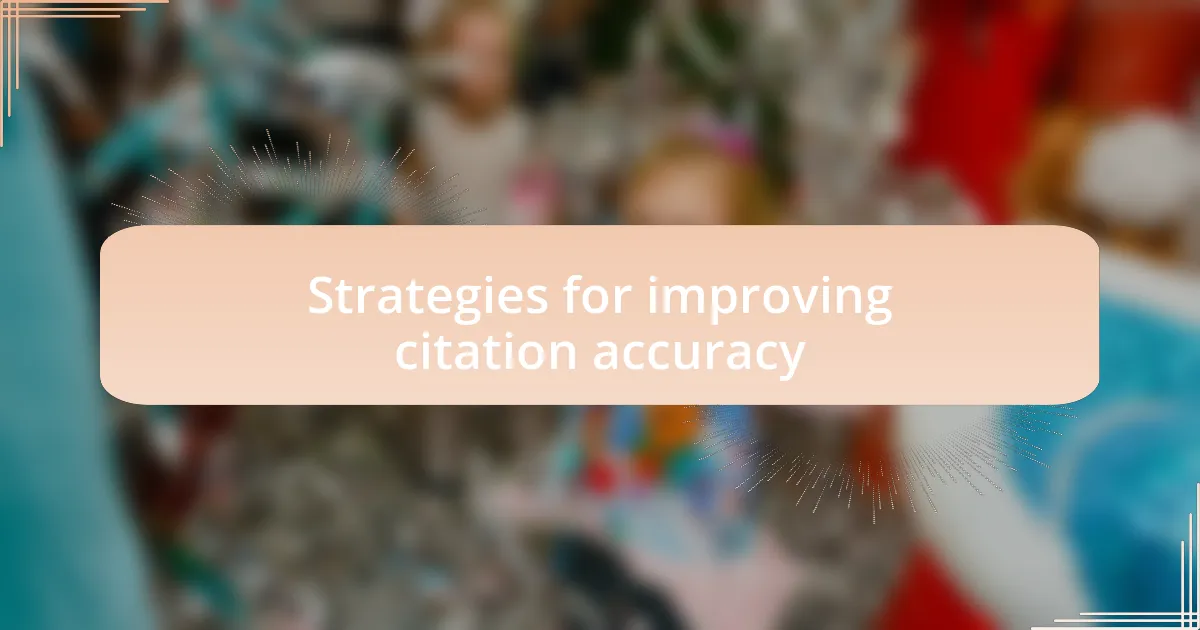 One effective strategy I found for improving citation accuracy is employing citation management tools. When I first started using software like Zotero, I could easily track and format my references according to various styles. It was a game changer; I no longer had to worry about manually inputting citation details and risking errors. Have you ever felt overwhelmed by the sheer volume of sources? These tools can help streamline that process, allowing you to focus more on your research rather than the formatting.
